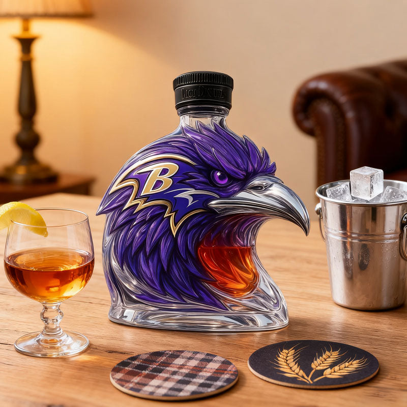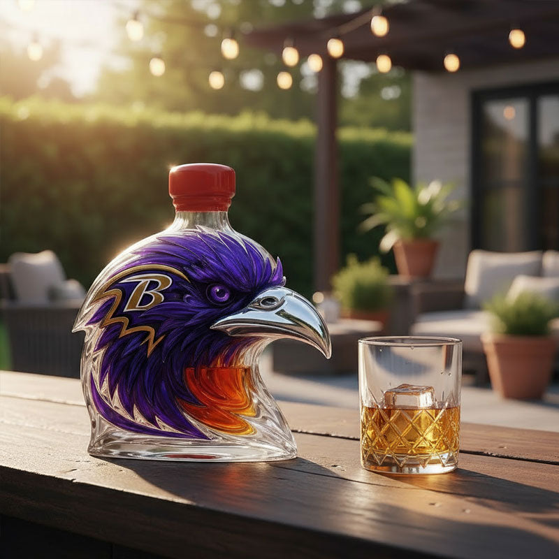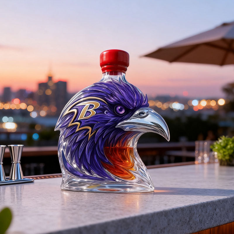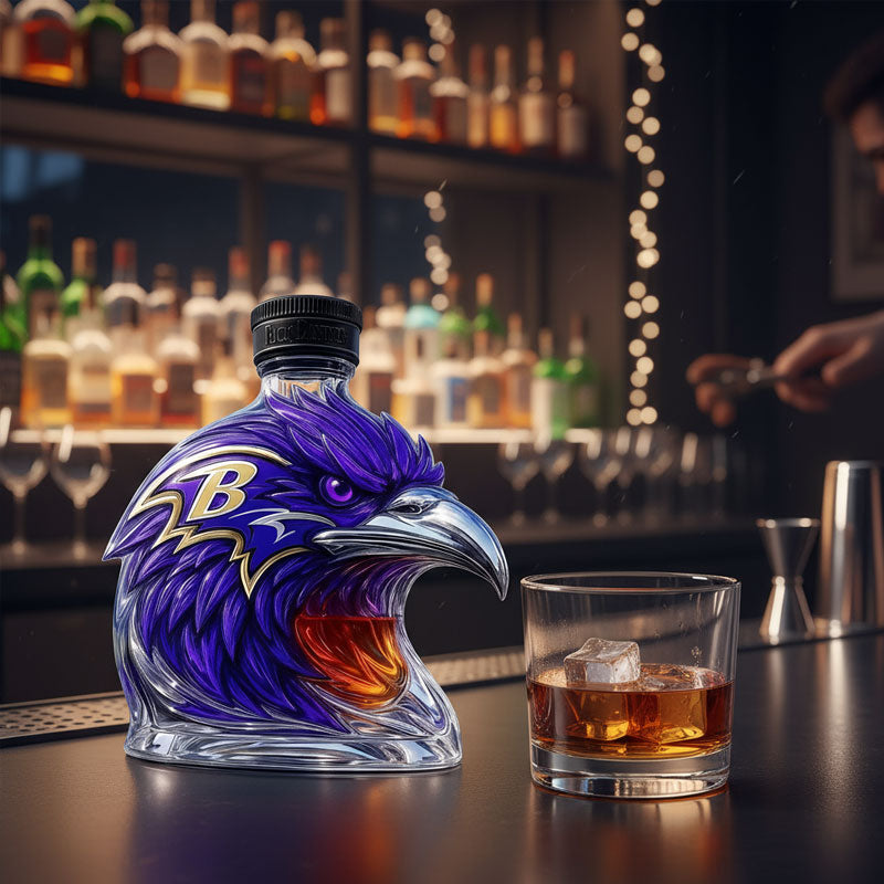 Är det en flaska eller ett konstverk som väntar på att få breda ut sina vingar? Låt denna kråkformade design ge en antydan av midnattsmagi till varje uppskänkning och lämna dina gäster nyfikna på mer.