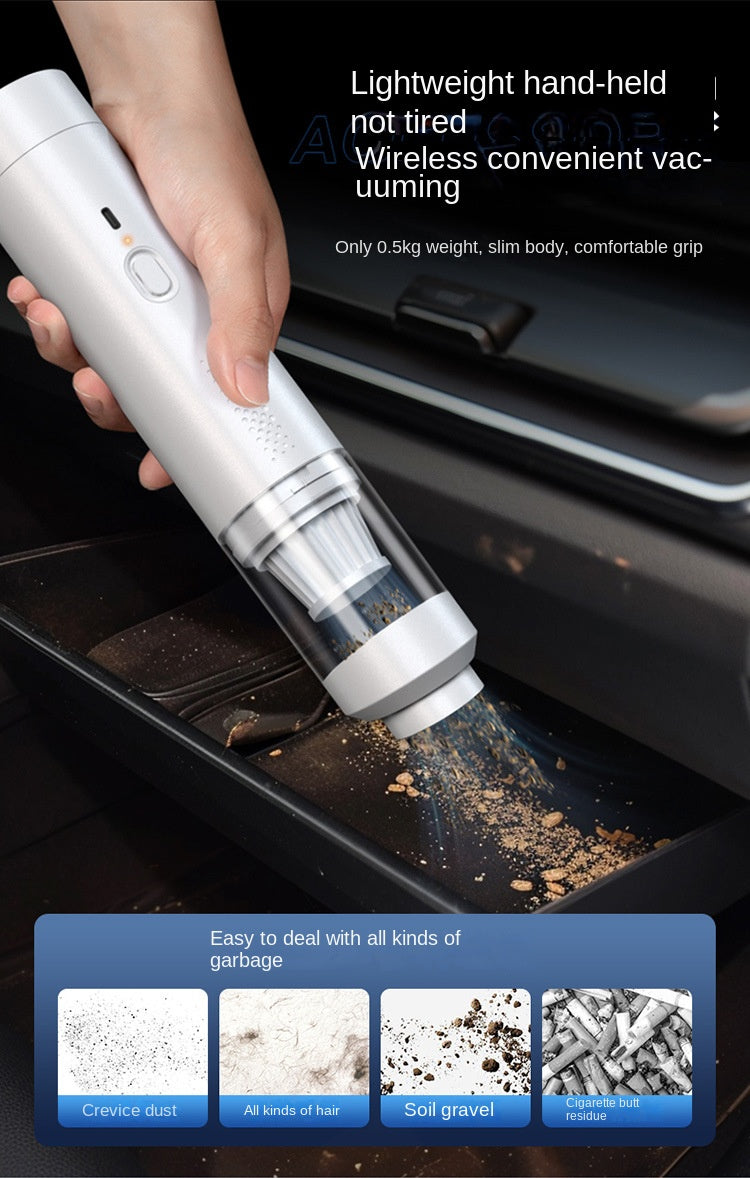 VĂ€ger endast 1,2 lbs (540 g) â precis som en flaska vatten. Tack vare den trĂ„dlösa designen kan du enkelt hantera sand, damm och skrĂ€p i varje hörn av bilen med en hand. Kompakt och bĂ€rbar, och den medföljande förvaringsvĂ„gen gör det lĂ€tt att förvara i bilen.
