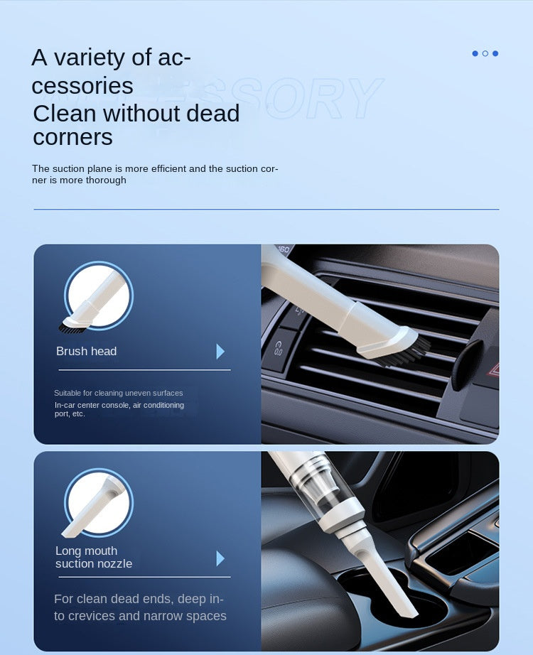 En MĂ„ngfald av Praktiska Tillbehör Med förlĂ€ngningsrör och förlĂ€ngningsslangar gĂ„r det lĂ€tt att stĂ€da svĂ„rĂ„tkomliga hörn; borsten tar bort envis damm ur sprickor; den mĂ„ngsidiga ytsborsten och djurhĂ„rborsten passar perfekt för mattor samt att plocka upp djurhĂ„r frĂ„n textilytor. En mĂ€ngd av praktiska tillbehör â utmĂ€rkt för alla typer av bilscener.