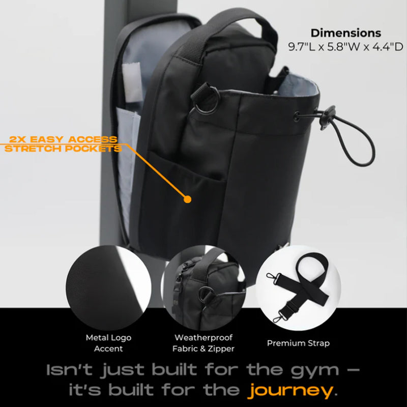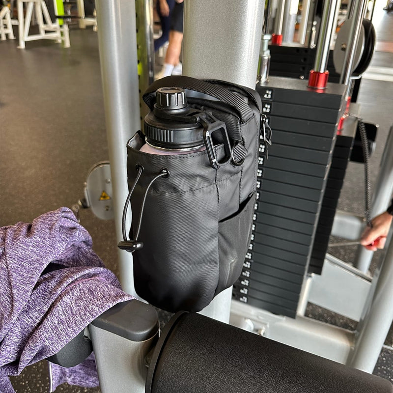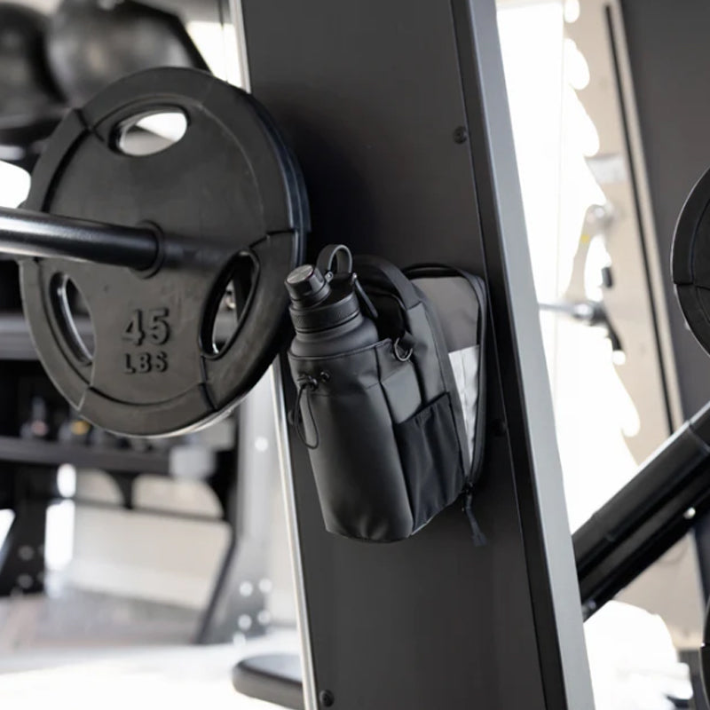 - Bär din hydrering med stil! Väskan har en specialdesignad ficka som rymmer flaskor upp till 46 oz, vilket håller dig hydratiserad under träningen. Oavsett om det är din vattenflaska, shaker eller proteinshake – din hydrering är alltid inom räckhåll.